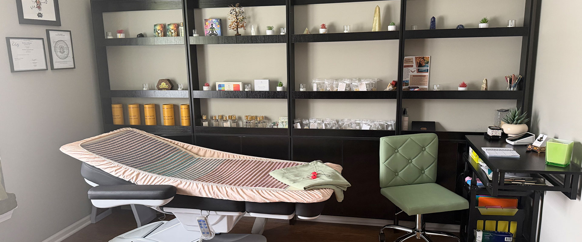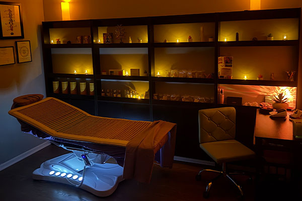 Energy balance is another cornerstone of our work. Through chakra healing services, we assist by supporting the body’s seven main energy centers, helping to restore flow, and alignment through a seven-chakra stone woven mat supported with heat and light energy to get you back into balance.